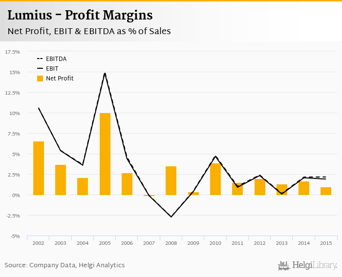 Lumius made a net profit of CZK 60.8 mil with revenues of CZK 6,500 mil in 2015, down by 51% and down by 14.2%, respectively, compared to the previous year.