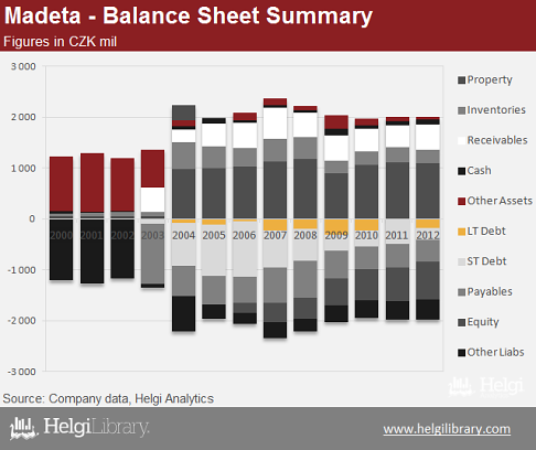 On the other hand, Madeta is decently profitable (average ROE of 12.4% in 2008-2012) and has reduced its indebtedness significantly (to 43% as % of equity at the end of 2012).