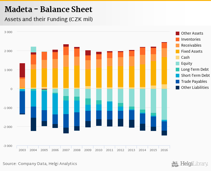 Madeta's total assets reached CZK 2,462 mil at the end of 2016, up 10.9% compared to the previous year.