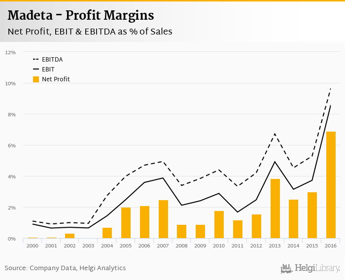 On the operating level, the EBITDA margin reached 9.64% and EBIT amounted to 8.57% of sales in 2016.