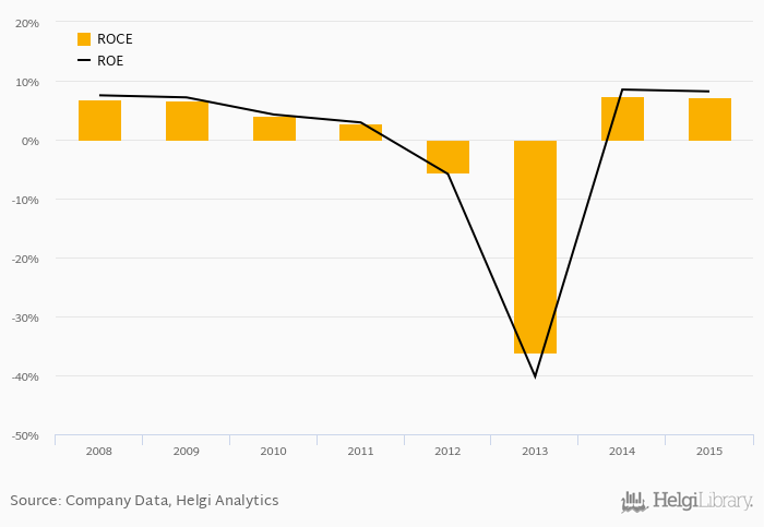 The result implies a return on equity of 8.19% and a return on invested capital of 7.29% in 2015. That is compared to an average of -5.28% and -4.83% over the last five years.