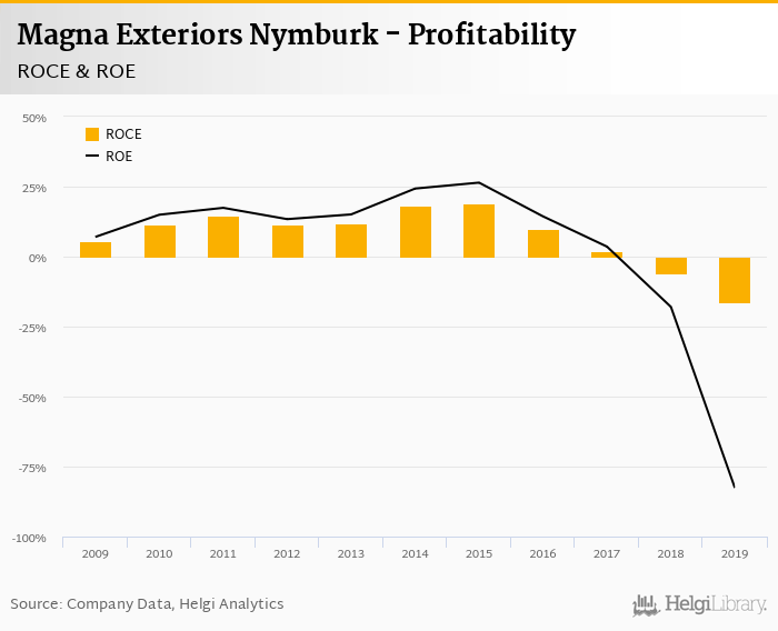 Magna Exteriors Nymburk made a net profit of CZK -453 mil in 2019, down 189% compared to the previous year. Historically, between 2008 and 2019, the company's net profit reached a high of CZK 327 mil in 2015 and a low of CZK -453 mil in 2019.