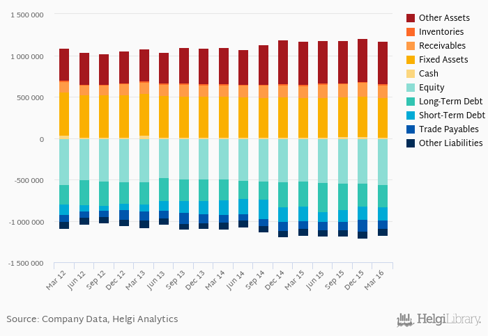 By contrast, total debt reached HUF 427,637 mil at the year-end, or 36.5% of total assets, while the firm's equity amounted to HUF 556,767 mil. As a result, net debt stood at HUF 415,446 mil at the end of 1Q2016 and accounted for 0.746 of equity.