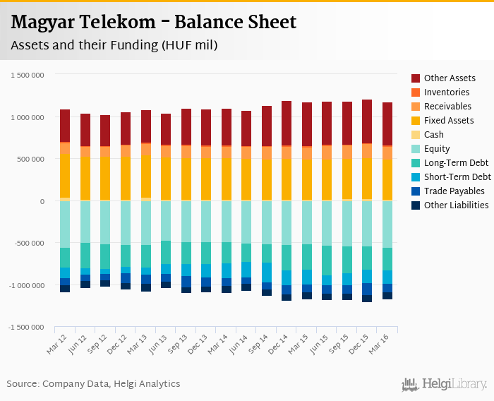 Magyar Telekom's total assets reached HUF 1,171,980 mil at the end of 1Q2016, up 0.256% compared to the previous year.