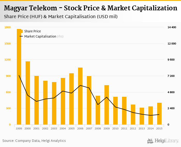 Magyar Telekom stock traded at HUF 406 per share at the end 2015 implying a market capitalization of USD 1,477 mil.