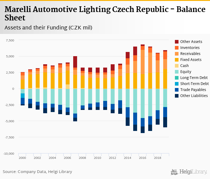Marelli Automotive Lighting Czech Republic's total assets reached CZK 5,971 mil at the end of 2019, up 7.34% compared to the previous year.