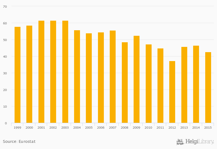 | Portugal | % | ... | ... | ... | ... | 52.4% | 47.2% | 44.9% | 37.2% | 45.8% | ||||||||||||