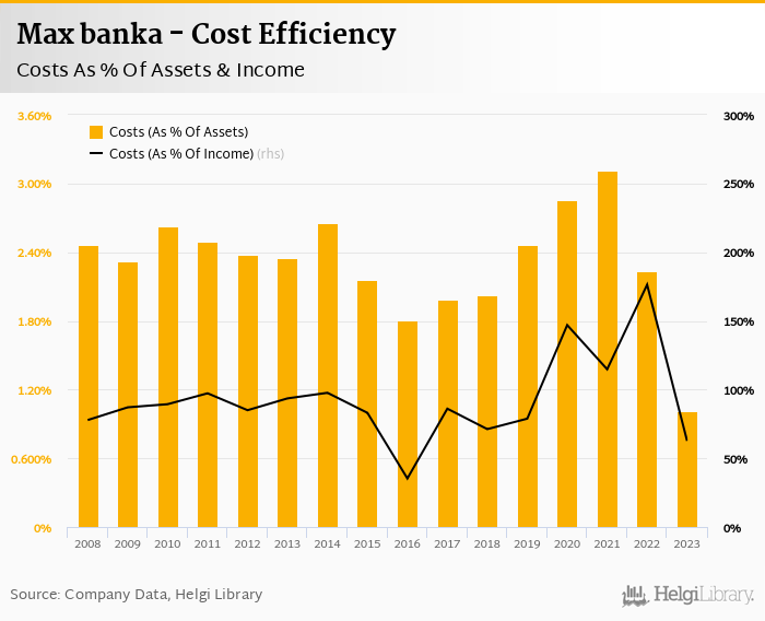 Max banka's cost to income ratio reached 62.7% in 2023, down from 176% compared to the previous year.