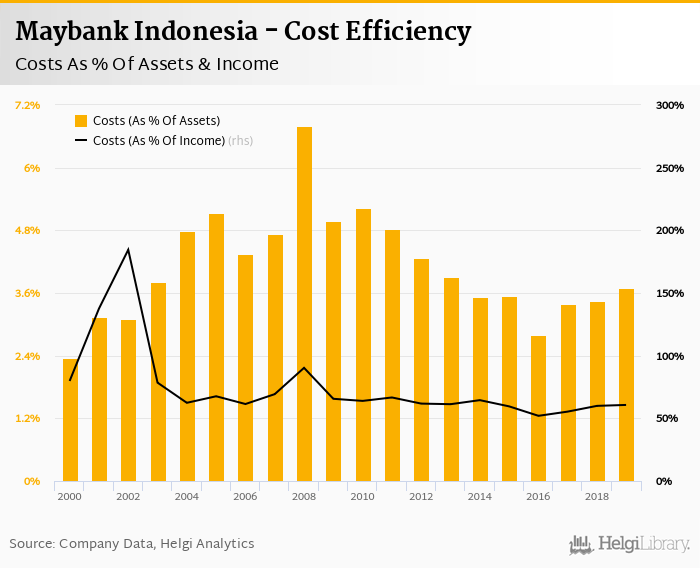 Maybank Indonesia's cost to income ratio reached 60.7% in 2019, up from 60.0% compared to the previous year.