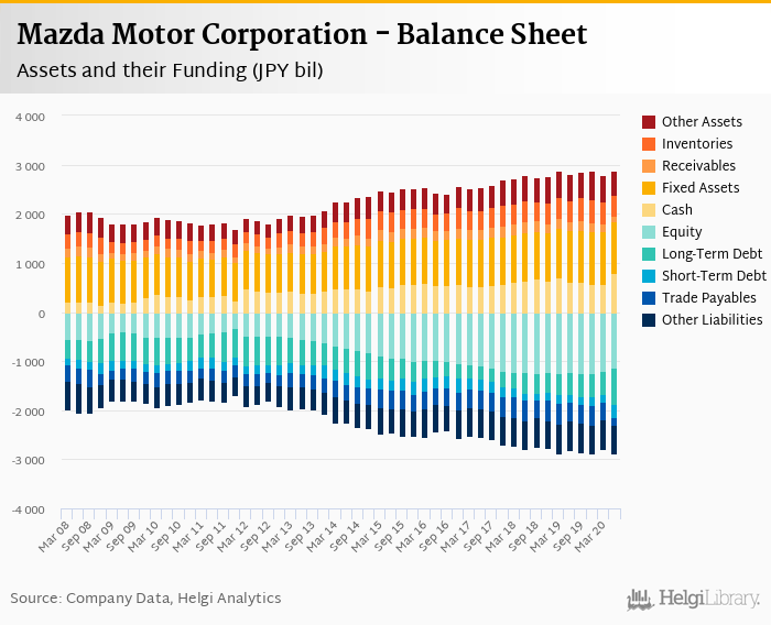 Mazda Motor Corporation's total assets reached JPY 2,878 bil at the end of 2Q2020, up 2.02% compared to the previous year.