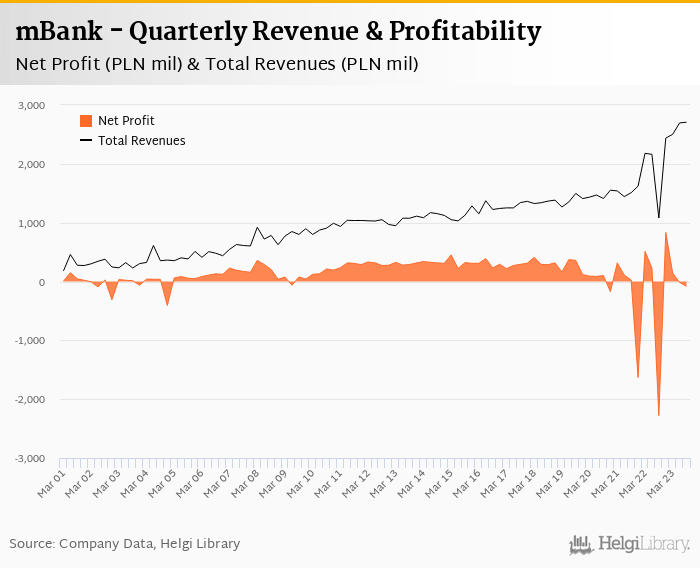 mBank made a net profit of PLN -83.0 mil under revenues of PLN 2,708 mil in the third quarter of 2023, up 96.4% and 151% respectively when compared to the same period last year.