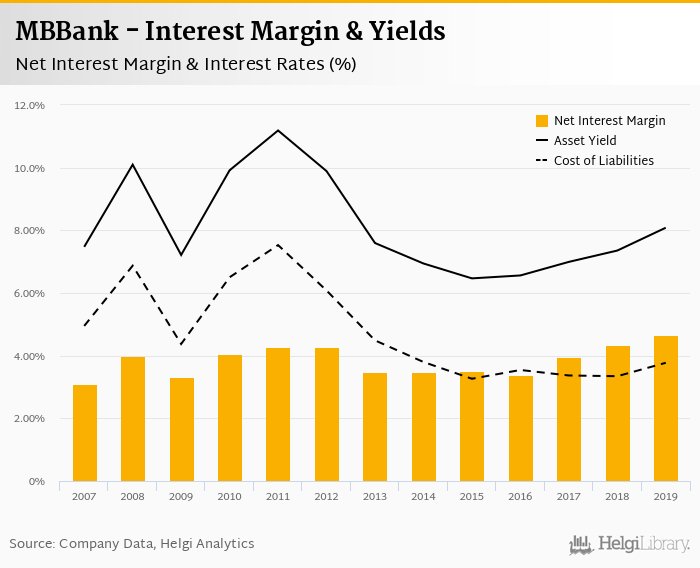 MBBank's net interest margin amounted to 4.67% in 2019, up from 4.33% compared to the previous year.