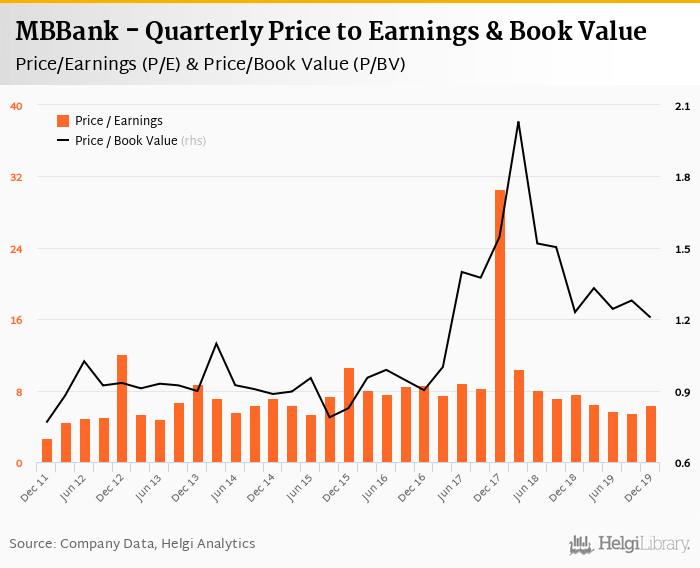 MBBank stock traded at VND 20,800 per share at the end fourth quarter of 2019 implying a market capitalization of USD 2,087 mil.