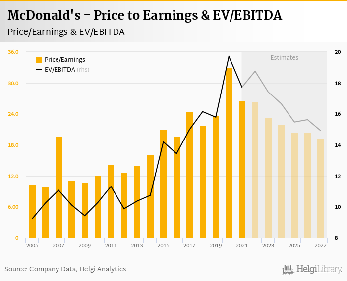 McDonald's stock traded at USD 267 per share at the end 2021 translating into a market capitalization of USD 199,712 mil.