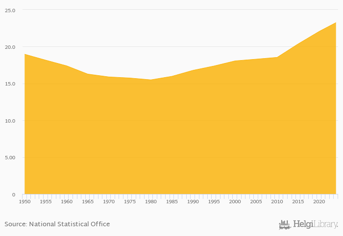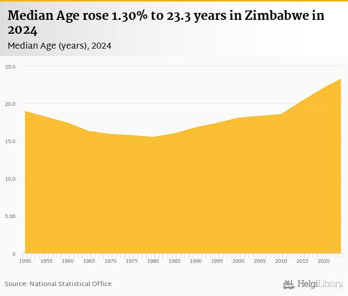 Median age rose 1.30% to 23.3 years in Zimbabwe in 2024, according to the National Statistical Office.