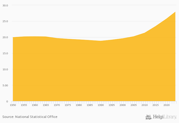 Median age rose 1.96% to 27.9 years in Nepal in 2024, according to the National Statistical Office.