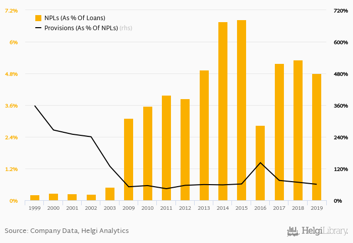 Provision coverage amounted to 60.4% at the end of 2019, down from 68.1% compared to a year earlier.