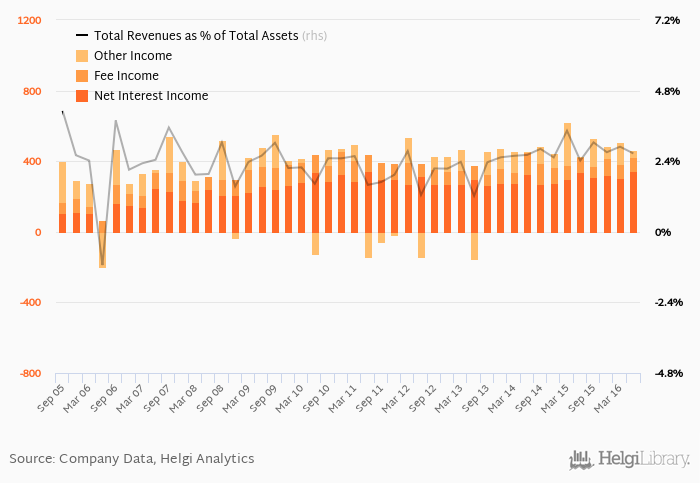 Bank's total revenues accounted for 2.66% total assets in the second quarter of 2016, up from 2.42% a year earlier.