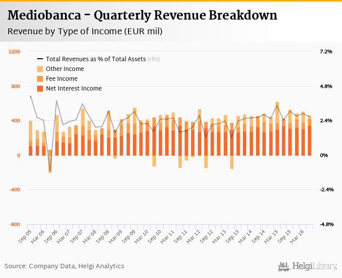 Mediobanca generated total banking revenues of EUR 465 mil in the second quarter of 2016, up 8.6% when compared to the same period of last year and down 8.45% when compared to the previous quarter.