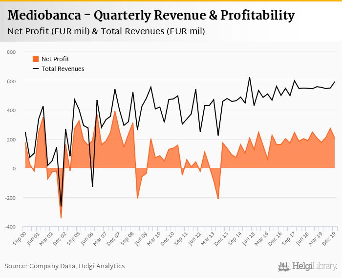 Mediobanca made a net profit of EUR 200 mil under revenues of EUR 593 mil in the fourth quarter of 2019, down 2.31% and up 6.31% respectively when compared to the same period last year.