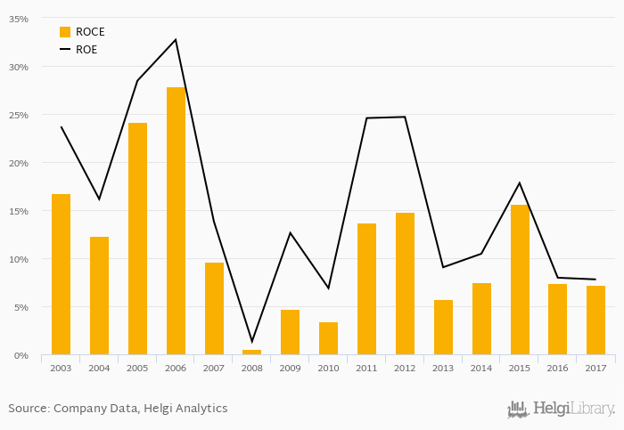 The result implies a return on equity of 7.79% and a return on invested capital of 7.18% in 2017. That is compared to an average of 10.6% and 8.69% over the last five years.
