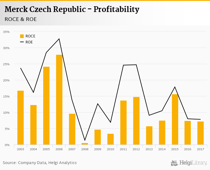 Merck Czech Republic made a net profit of CZK 50.5 mil in 2017, up 21.7% compared to the previous year. Historically, between 2002 and 2017, the company's net profit reached a high of CZK 68.6 mil in 2015 and a low of CZK 1.98 mil in 2008.