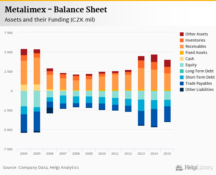 Metalimex's total assets reached CZK 3,999 mil at the end of 2015, down 14.5% compared to the previous year.