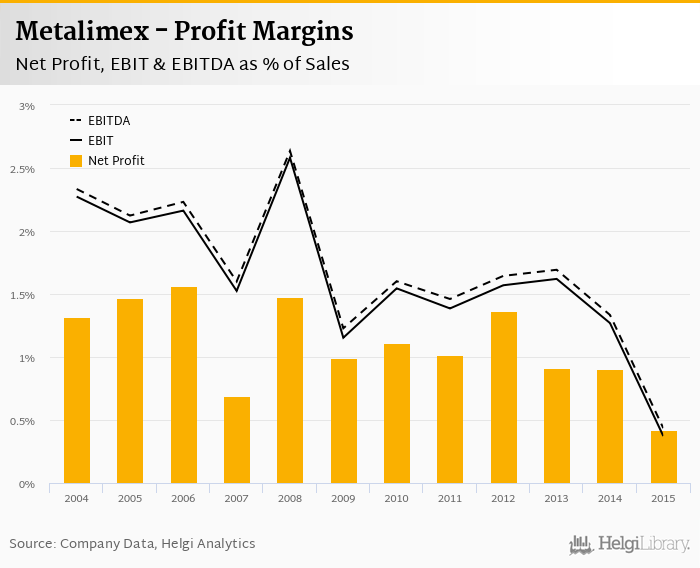 Metalimex made a net profit of CZK 81.2 mil with revenues of CZK 19,400 mil in 2015, down by 55.1% and down by 2.83%, respectively, compared to the previous year.