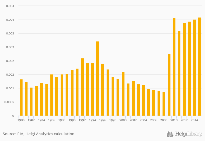 Historically, metallurgical coke production as a share of worldwide production in Colombia reached an all time high of 0.004% in 2015 and an all time low of < 0.001% in 2008.