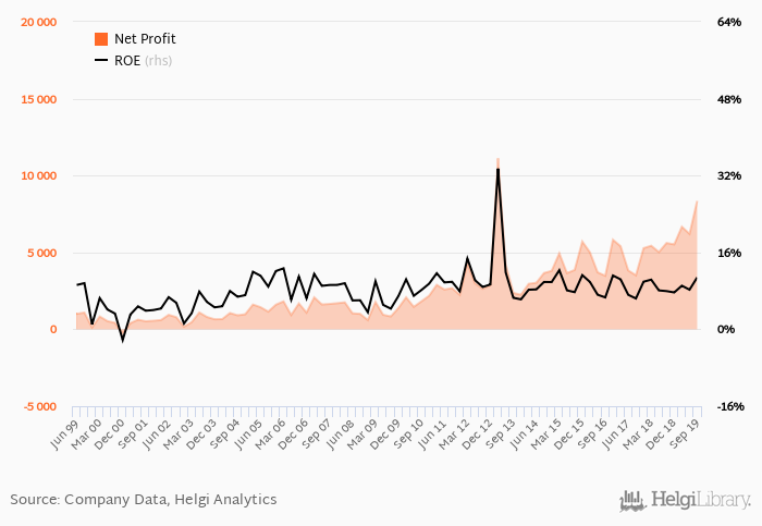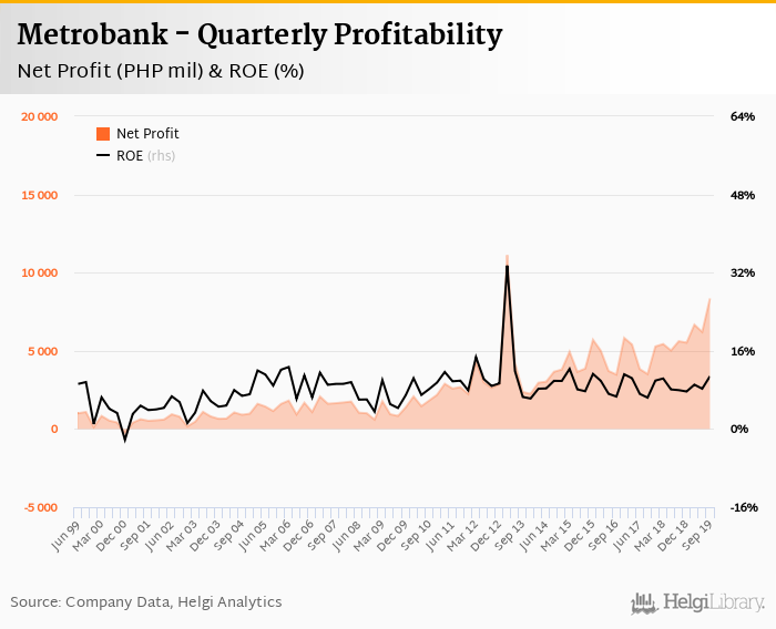 Metrobank made a net profit of PHP 8,354 mil in the third quarter of 2019, up 48.8% when compared to the same period of last year. This implies a return on equity of 10.8%.