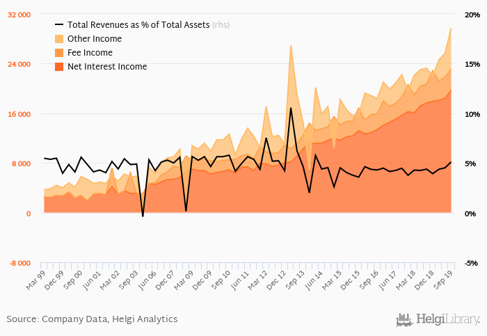 Bank's total revenues accounted for 5.11% total assets in the third quarter of 2019, up from 4.38% a year earlier.