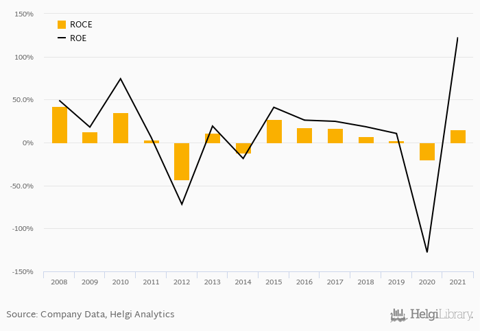 The result implies a return on equity of 123% and a return on invested capital of 15.0% in 2021. That is compared to an average of 9.69% and 4.40% over the last five years.