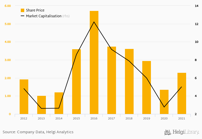 Since the end of 2016, stock has appreciated by -59.9% implying an annual average growth of -16.7% In absolute terms, the value of the company fell by USD 7.18 mil.