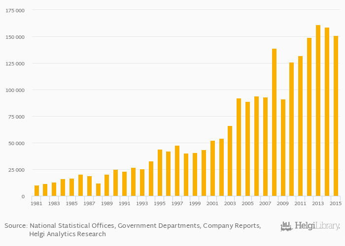 | China | tonnes | 91,000 | 126,000 | 132,000 | 149,000 | 161,000 | ||||||||||||||||