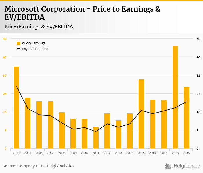Microsoft Corporation stock traded at USD 136 per share at the end 2019 translating into a market capitalization of USD 1,054,410 mil.