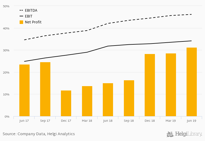 On the operating level, the EBITDA margin reached 46.1% and EBIT amounted to 34.1% of sales in 2Q2019.