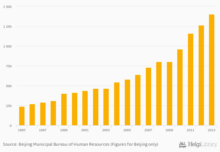 Minimum Monthly Wage (Local Currency) rose 0% to in China in 2015, according to Beijing Municipal Bureau of Human Resources (Figures for Beijing only).