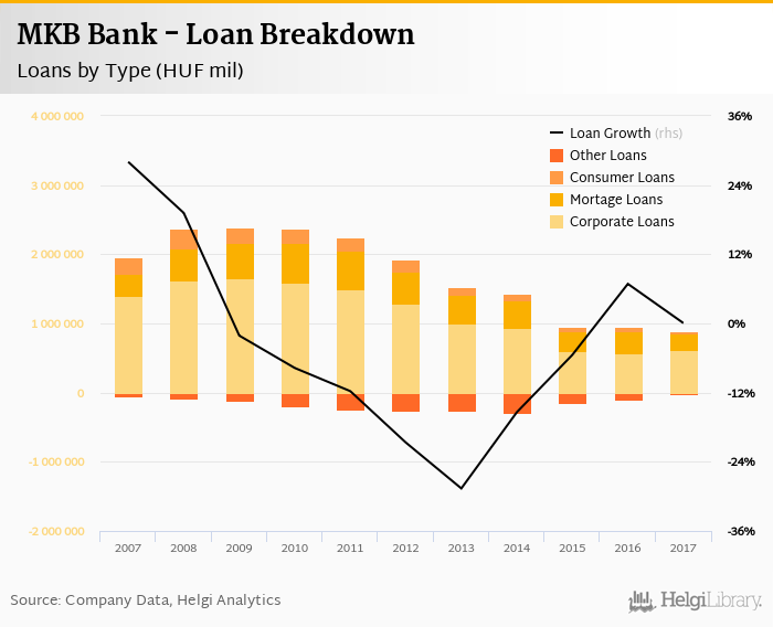 At the end of 2017, MKB Bank's loans accounted for 55.8% of total deposits and 42.0% of total assets.