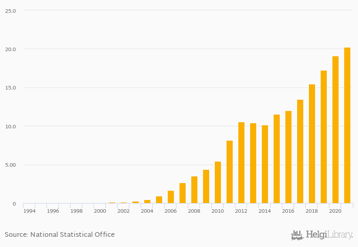 Historically, mobile cellular subscriptions in Zambia reached an all time high of 20.2 mil in 2021 and an all time low of 0.002 mil in 1994.