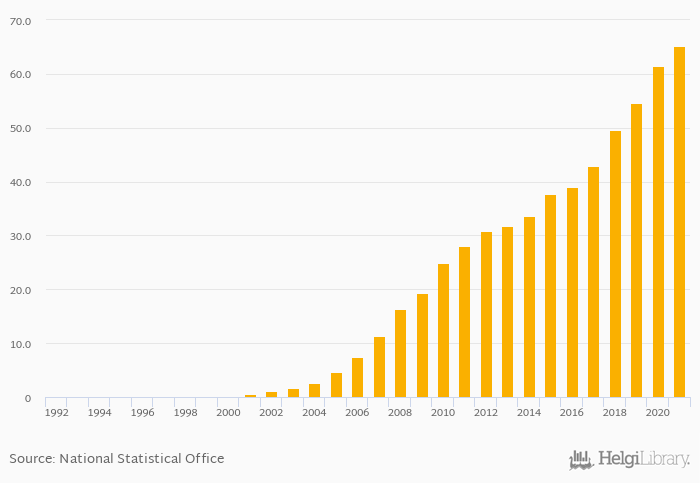 Historically, mobile cellular subscriptions in Kenya reached an all time high of 65.1 mil in 2021 and an all time low of 0.001 mil in 1992.