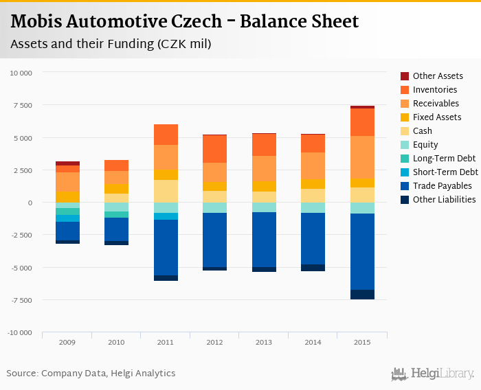 Mobis Automotive Czech's total assets reached CZK 7,434 mil at the end of 2015, up 40.7% compared to the previous year.