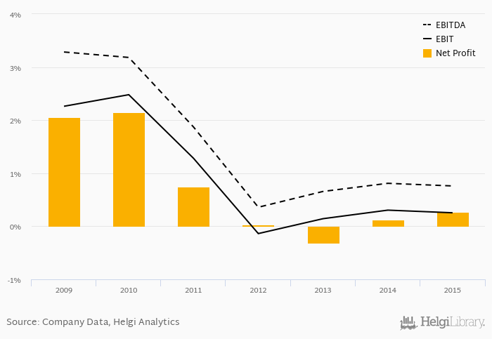 On the operating level, the EBITDA margin reached 0.760% and EBIT amounted to 0.254% of sales in 2015.