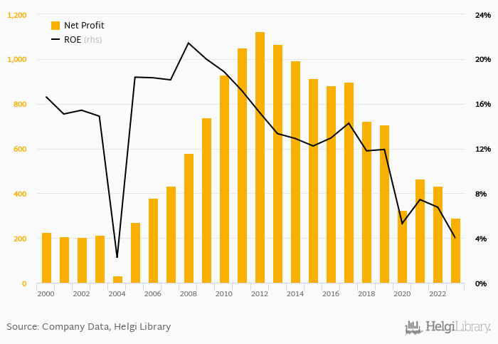 The bank generated its shareholders an average return on equity of 7.07% in the last five years with maximum at 11.9% and minimum at 3.95%