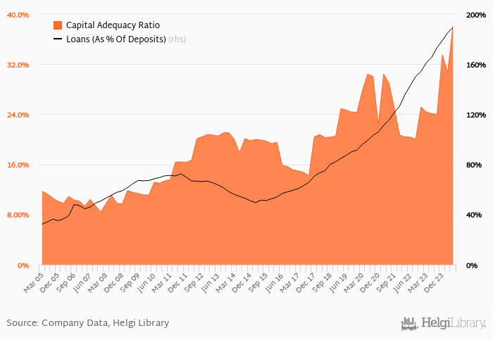 Bank's loan to deposit ratio reached 189% at the end of 2Q2024, up from 166% when compared to the same period of last year. Some 10 years ago, loan to deposit ratio of the bank amounted to 54.5%.