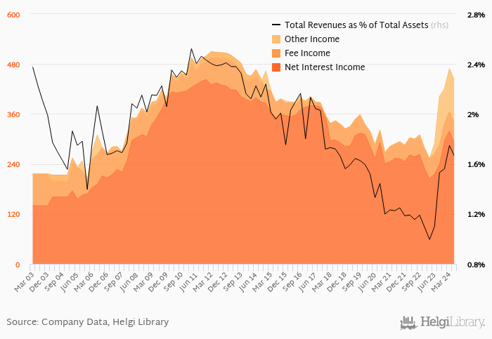 Bank's total revenues accounted for 1.66% total assets in the second quarter of 2024, up from 1.10% a year earlier.