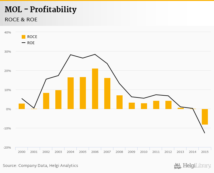 MOL made a net profit of HUF -256,554 mil in 2015, down 6% compared to the previous year. Historically, between 1999 and 2015, the company's net profit reached a high of HUF 329,483 mil in 2006 and a low of HUF -256,554 mil in 2015.