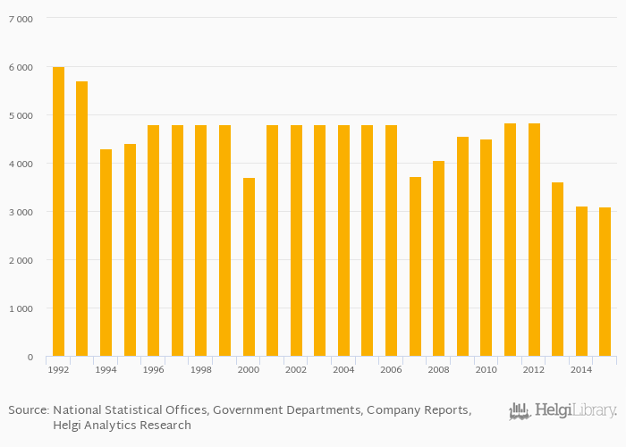 | Russia | tonnes | 4,561 | 4,495 | 4,842 | 4,838 | 3,605 | ||||||||||||||||