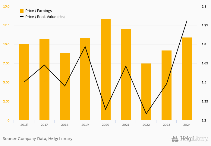 In terms of price to book value, the stock reached x at the end of. Since 1965-01-01, the multiple reached an all time high of x in and an all time low of x in with an average of