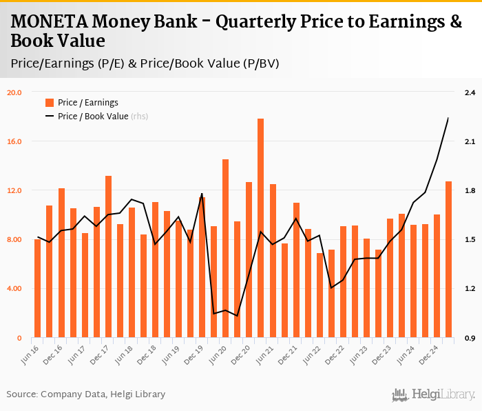At the end of 1Q1970, the bank traded at price to earnings of x. Within the last five years, the multiple reached an all time high of x in 1Q1970 and an all time low of x in 1Q1970 with an average of