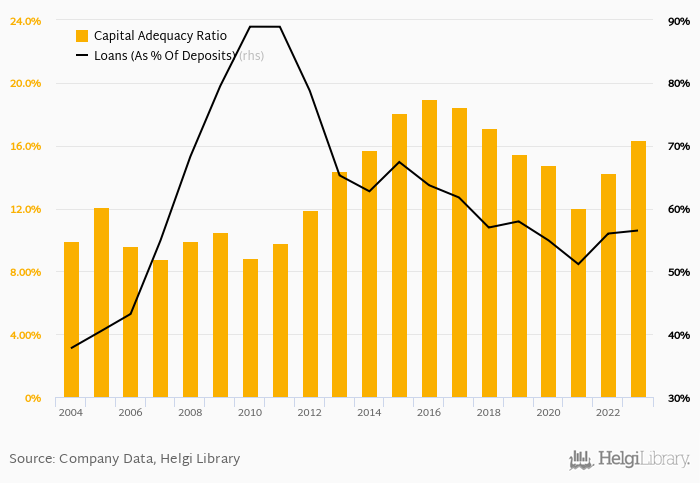 Bank's loan to deposit ratio reached 56.5% at the end of 2023, up from 56.0% when compared to the previous year. Some 10 years ago, loan to deposit ratio of the bank amounted to 65.3%.